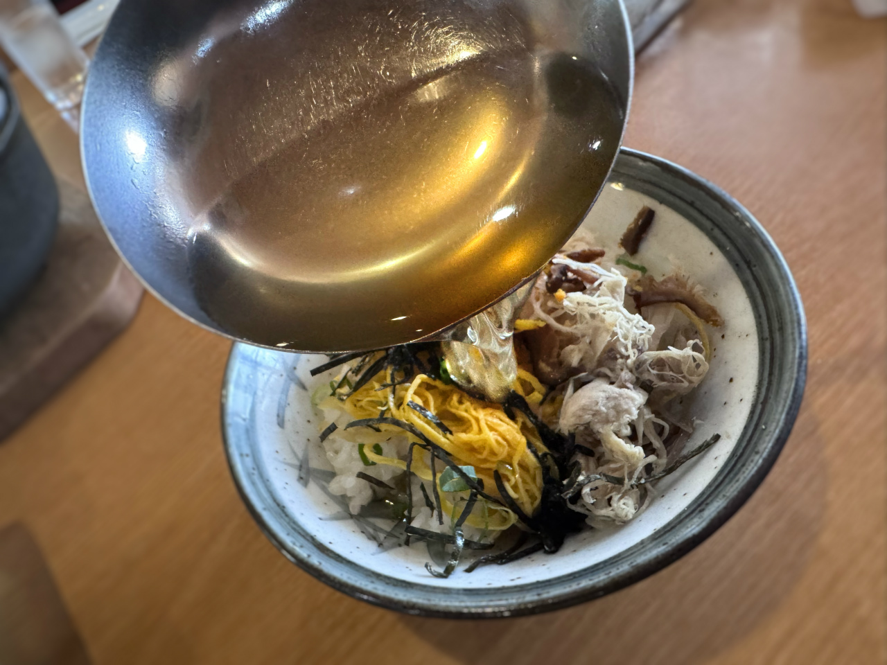 軽く混ぜながらサラサラと出し茶漬のように食べるのが正解。