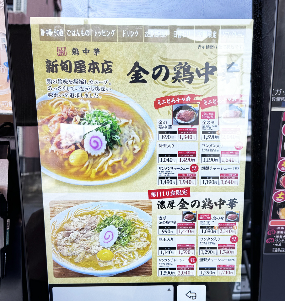 メニューは『金の鶏中華』もしくは『濃厚 金の鶏中華』。