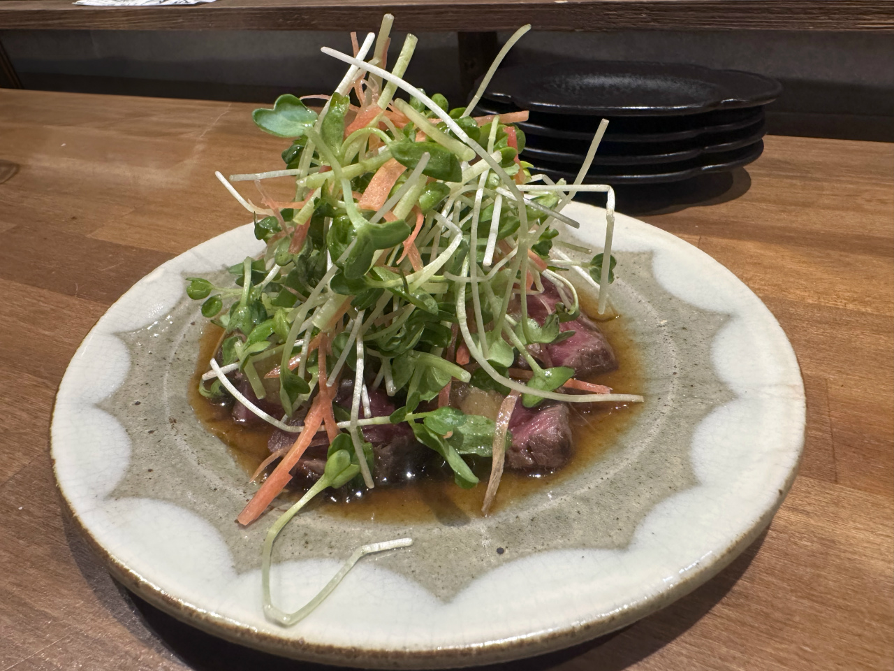 前菜代わりにサラダ仕立てで…と、軽い気持ちでお願いした『鹿児島黒牛たたき』。