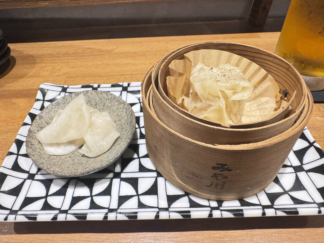 そういえば、お通しも蒸篭に入った焼売が提供された。