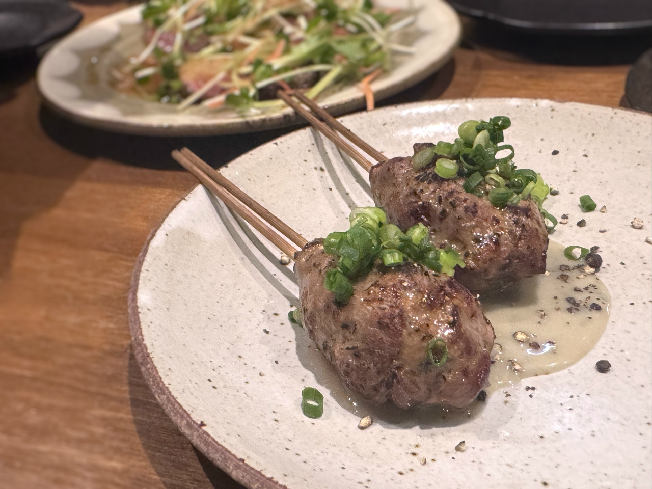 2本で1,200円と少し値は張るが、食べて納得の『ラムつくね ゴルゴンゾーラソース』。