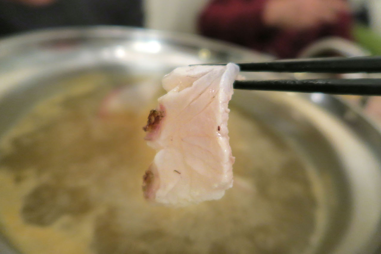 出汁が沸いてきたら、鯛のみを一切れ、しゃぶしゃぶでいただきます。