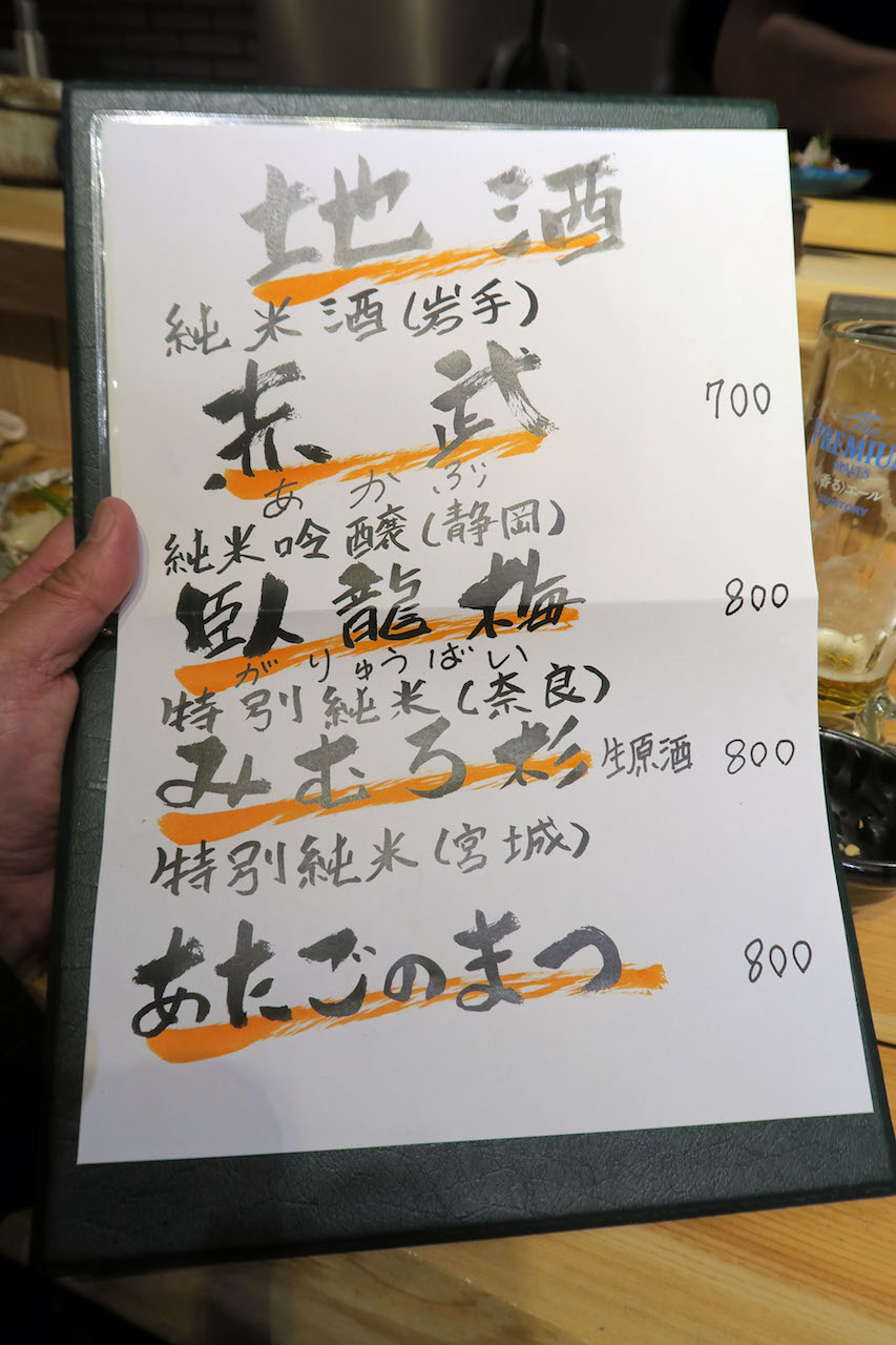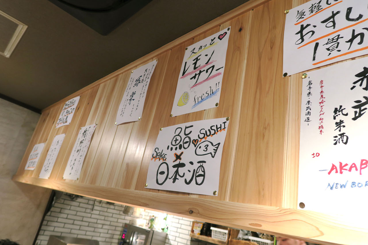 カウンターの上にも、「鮨×日本酒」なんて書いてあって、日本酒をすすめていますよ。
